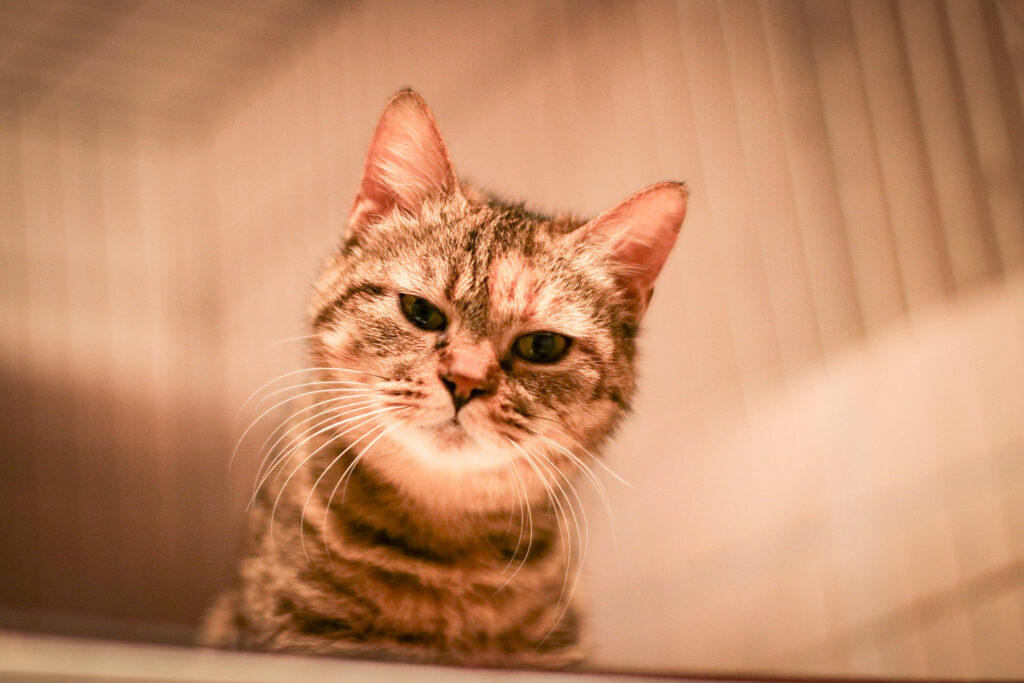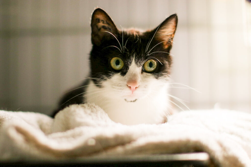 Arrivé en fourrière lorsqu’il était chaton, Merlin était un peu craintif avec les humains. Il a aujourd’hui bien progressé mais il peine à trouver sa famille.